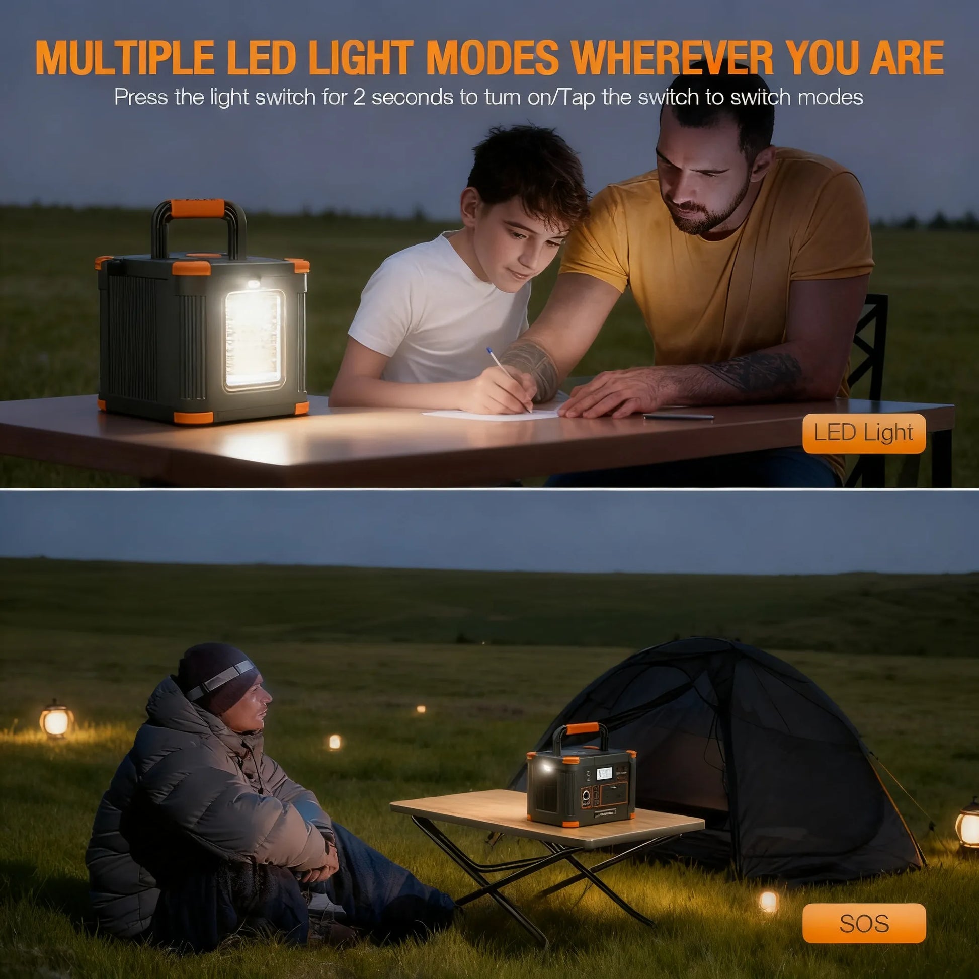 This portable power station with pure sine wave AC outlets (519Wh, 140400mAh) can power most of your essential devices and small appliances, such as phones, laptops, tablets, lights, fans, routers, TVs, projectors, small blenders, car refrigerators, drones, cameras, and CPAP machines, as long as their rated power is under 500 watts. No gasoline or fuel is needed, no fumes or smells, and it's completely noiseless. Safe, convenient, and ideal for both home use and outdoor trips.